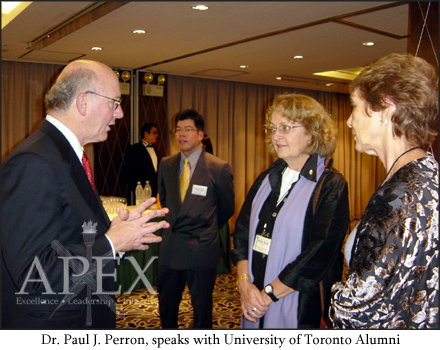 . ![]() On November 18th, 2004 at 6P.M., the University of Toronto held a two hour evening reception at The Landis Taipei Hotel, in conjunction with APEX Honour Society, for its alumni in Taiwan. Special guests were present, such as the highly accomplished Dr. Liu Chao-Shiuan, the President of Soochow University, the dignified Ms. Krista Slade, Associate Director of the Division of University Advancement from the University of Toronto, and the respected Mr. Dave Murphy, Director of Trade and Investment at the Canadian Trade Office in Taipei. Students and faculty were also in attendance to meet with business leaders and academic scholars, in addition to learning more about the University of Toronto and discovering new opportunities in Canada. |